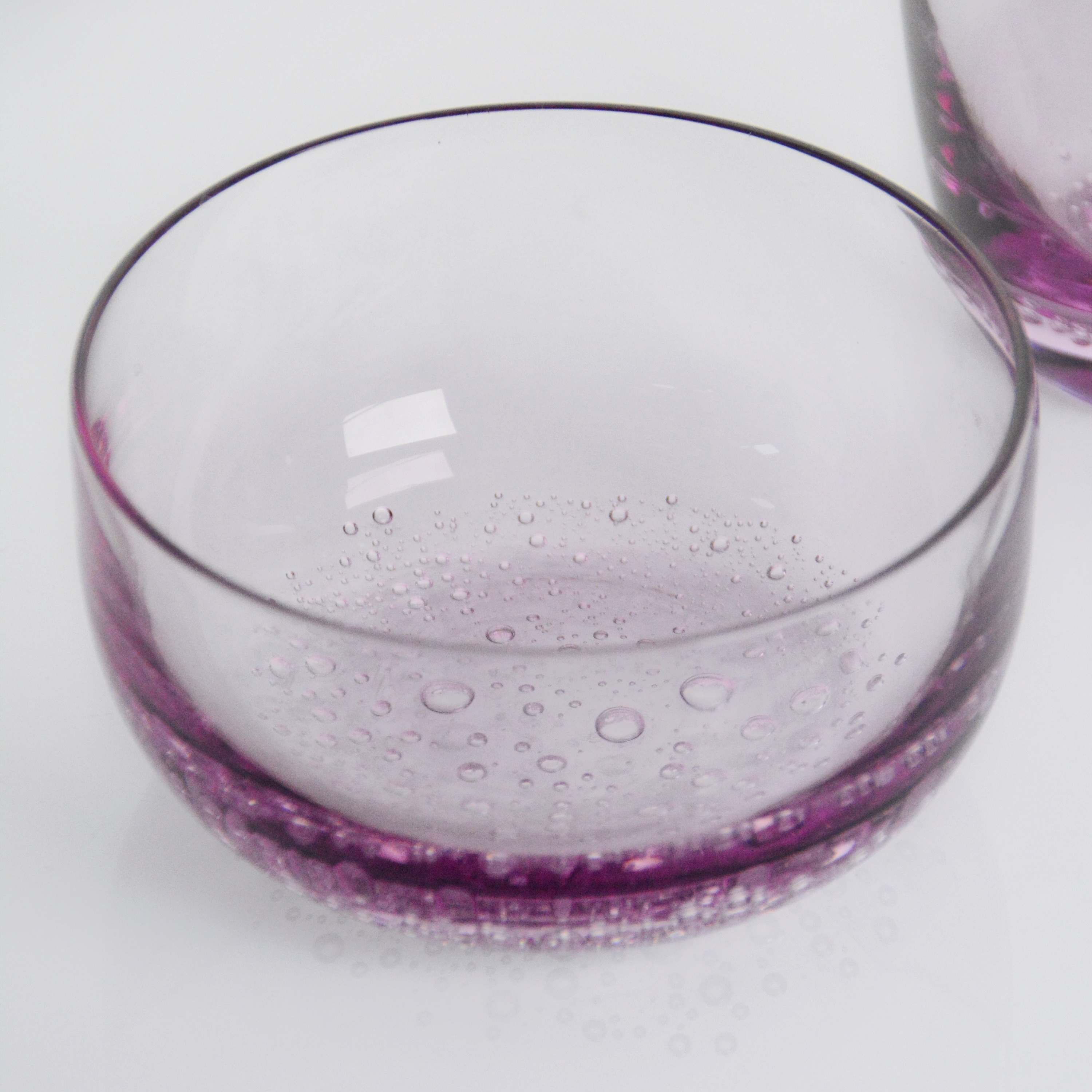 Verbessern Sie jeden Schluck und jede Feier mit unseren exquisit gefertigten Handblasen-Lavendel-Blasen-Tumblern und Schüsseln, in denen handwerkliches Geschick mit traumhaftem, weichem Charme trifft.